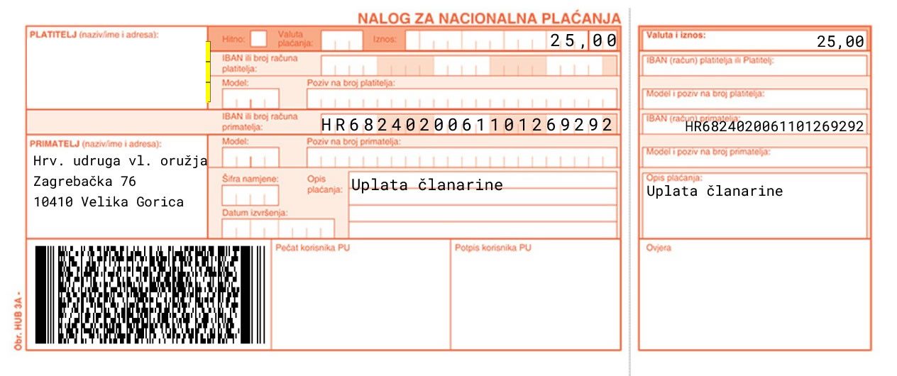 UPISNICA HUVO - Izvršite uplatu kao prikazano ispod