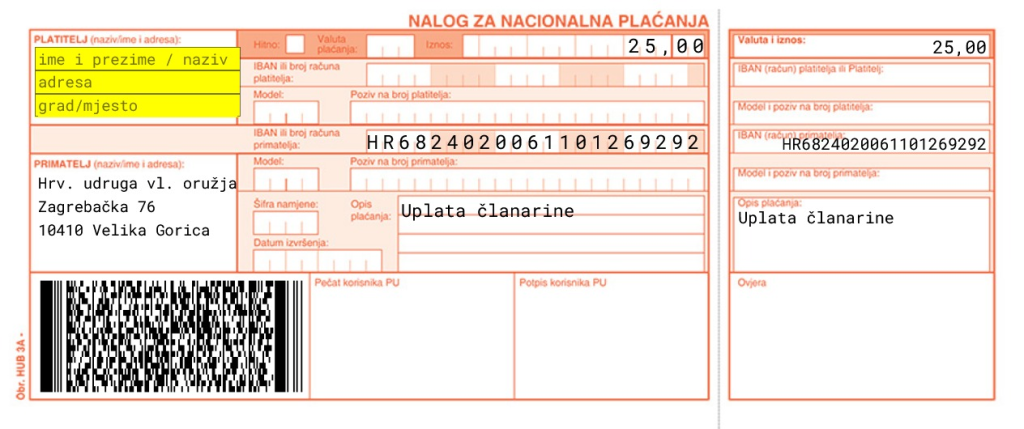 Članarinu uplatite kao slijedeće: